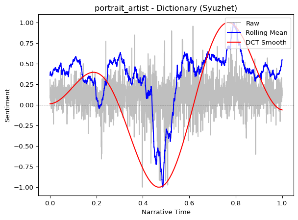 )plot_trajectory(trajectory_dict, title=f"{doc_id} - Dictionary (Syuzhet)")