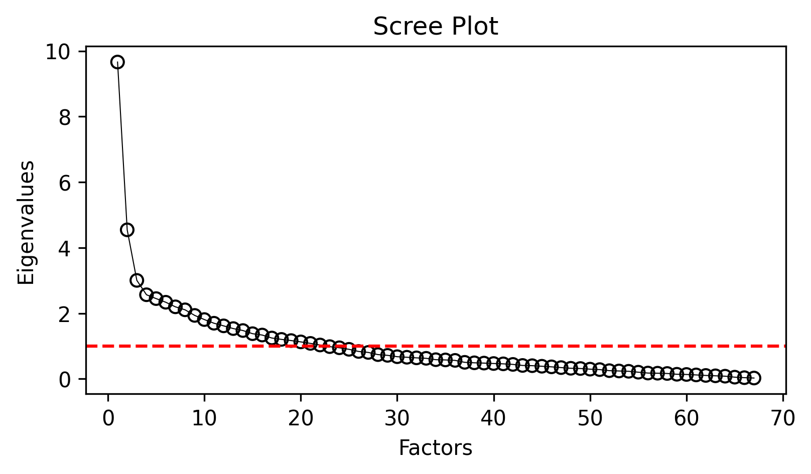 analyzer.mda(n_factors=3, threshold=0.4)Multiple Scree Plot Comparisons