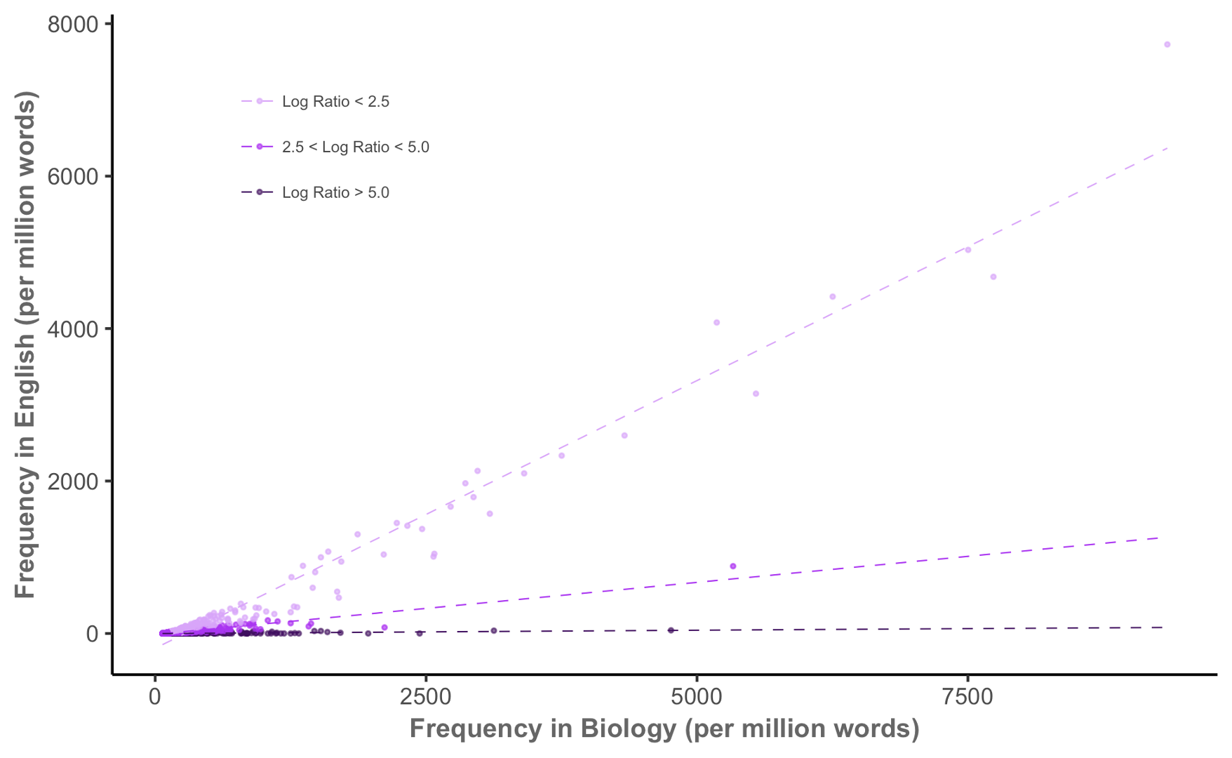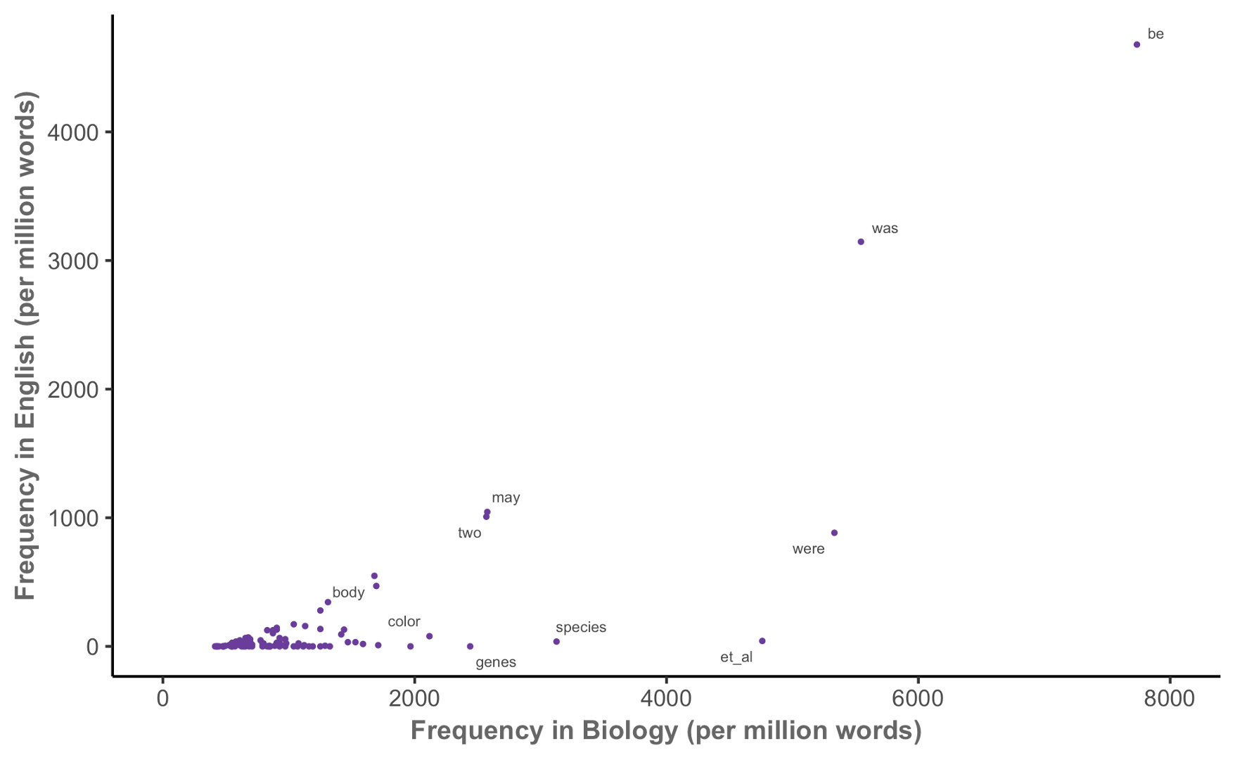 For example, if the word is \(2 \times\) more common in corpus 1 than in corpus 2,